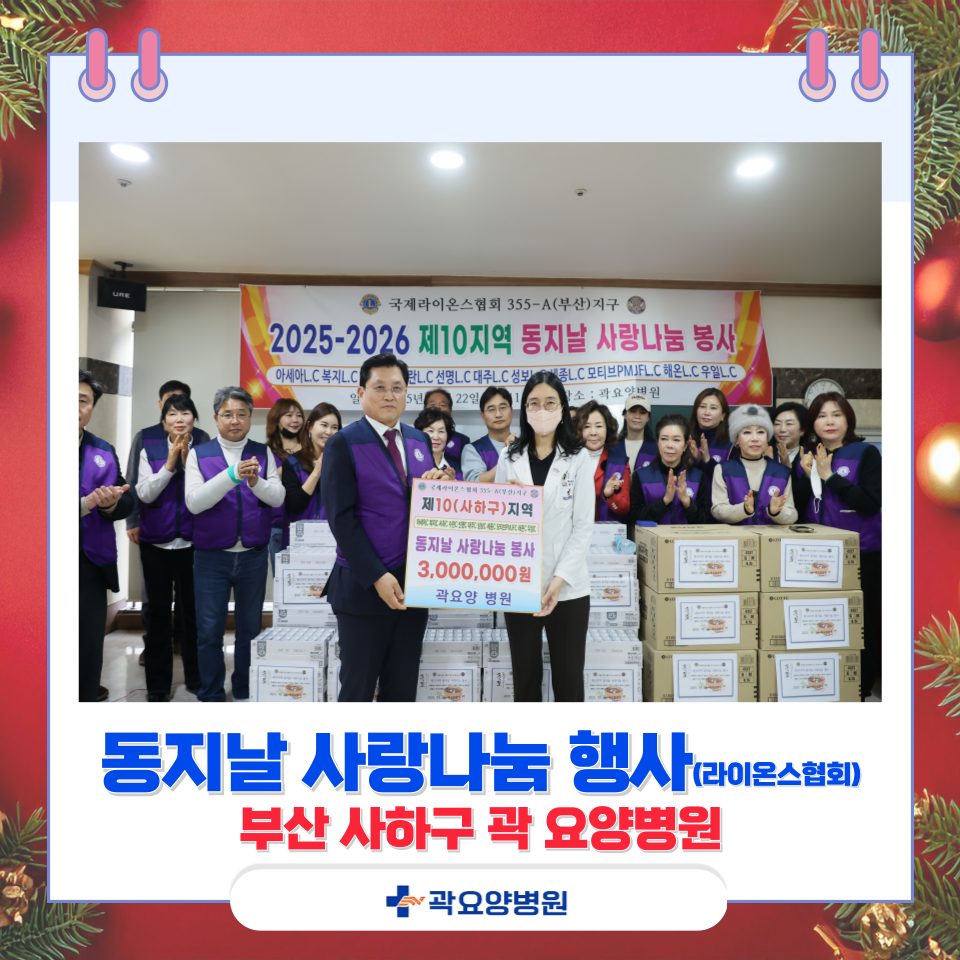 본원 5층 회의실에서국제라이온스협회 부산지구와 함께 ‘동지날 사랑나눔’ 행사를 진행했습니다.